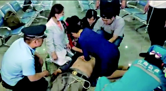 27日下午3点25分左右,在青海西宁火车站,一名中年乘客突然晕倒在地,大动脉停止搏动,心跳、呼吸骤停。当时,山东第三、四批援青干部人才正在火车站候车。听到车站紧急寻医广播后,队中来自省千医、省立医院和省中医院的7名专家立即起身,跑到发病旅客处紧急施救。