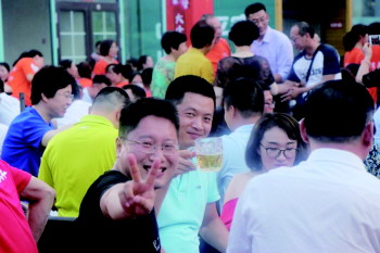 到了晚上,德国慕尼黑HB啤酒花园内人气爆满,座无虚席。HB啤酒泡沫雪白且丰富精致,挂杯持久,代表了德国啤酒最高的生产技能程度和最纯正的风味。该园负责人说,慕尼黑啤酒自第一届青岛啤酒节就参展,已经陪伴青岛啤酒节29年,每年都有很多新老朋友慕名来喝酒。“跟去年相比,花园内环境有很大改变,吸引了不少年轻群体,而且今年实行免门票政策,整个啤酒城内人数都增加了。”
