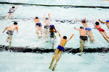 7月的一天上午,室外已经超过35℃。但在济宁体育中心的游泳馆内,却是一派清凉宜人的景象,全市中小学生普及游泳运动公益活动如期举行。来自济宁市实验小学的600名小学生,正在体育中心的专业游泳教练的指导下,在宽阔硕大的泳池里一边享受着夏日的清凉,一边掌握了游泳的基本要领。