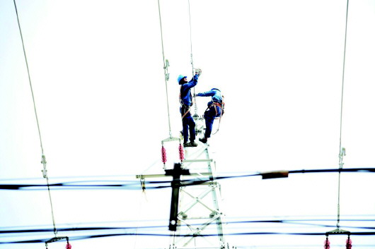 7月28日,德州夏津供电公司施工人员冒着高温爬上32米的滚烫铁塔,展放、收紧35千伏白马湖线导线过程中,工人们挥汗如雨,而此时,铁塔旁的温度已达到47.5摄氏度,塔顶上的温度更高。目前,35千伏白马湖线新建工程已完成主线路和35千伏箭崔线改接任务,预计8月初竣工投运,届时将大大优化夏津西部电网结构,提高电网健康运行水平和供电质量,满足今夏负荷需求的同时,对淘汰落后产能、促进乡村振兴也起到积极促进作用。 齐鲁晚报·齐鲁壹点记者 马志勇 通讯员 李海涛 摄影报道