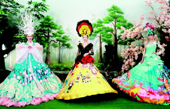 正如刘薇介绍,分别对应9个啤酒大篷的9款啤酒女郎装精美大气,国际范儿十足,充分传达出国际化、大众化的办节理念。如,韩国济州啤酒大篷的礼服采用韩国传统服装廓形,花型为韩国国花“木槿花”,内外玻璃纱呼应,似一位韩国古代少女在向世界缓缓走来;加拿大罗塞尔啤酒大篷礼服以加拿大枫叶为主要元素,辅以白色的雪原头饰,让“加拿大罗塞尔啤酒”的异域风情呼之欲出……“在这样热烈的氛围里,彰显出我们对宾客的欢迎,对世界的热情。”刘薇说。