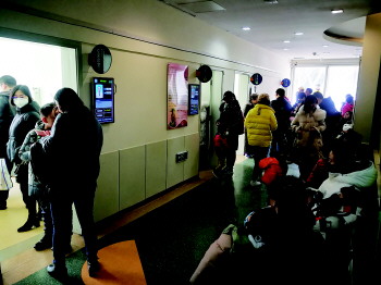 候诊区家长和孩子川流不息。