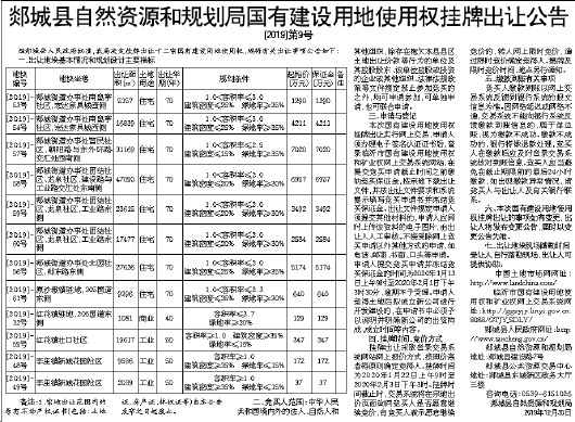 郯城县自然资源和规划局国有建设用地使用权挂牌出让公告
