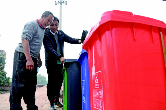 志愿者在向村民介绍垃圾分类。 新华社发
