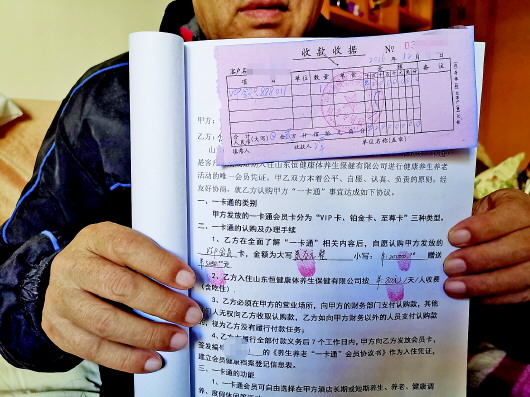 伏先生今年78岁,是济南某高校的退休教师。据伏先生回忆,2016年11月的一天,他途经解放路时被人发了一张传单,上面是山东恒健康体养生保健有限公司的养老项目广告。由于退休后一直赋闲在家,他想找一家养老中心,这样有空时能和老伴儿换换生活环境。