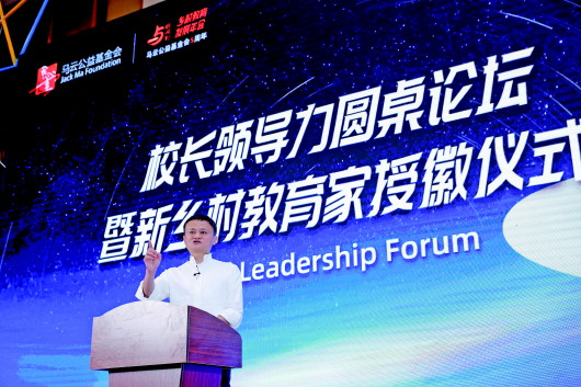 马云在校长领导力论坛上演讲。 新华社发