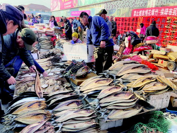 干海产品是王哥庄大集的一大亮点。