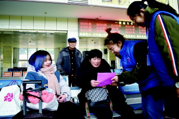 志愿者们在兖州火车站为旅客提供帮助。