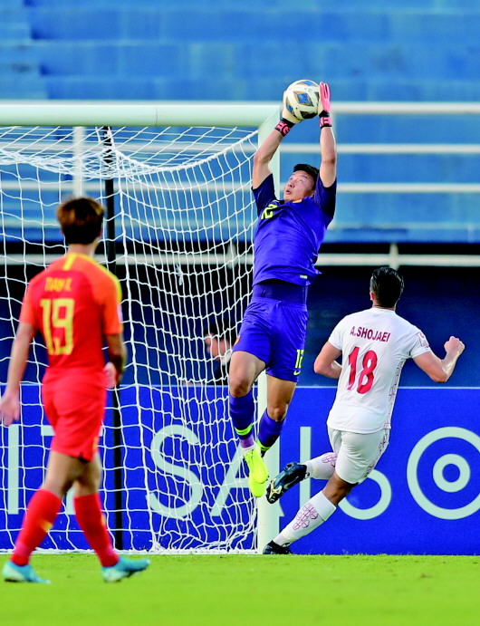 三场比赛中国国奥队零进球,反而是守门员最忙。新华社发