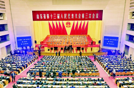 1月18日,山东省第十三届人民代表大会第三次会议在山东会堂开幕。 大众日报记者 卢鹏 摄