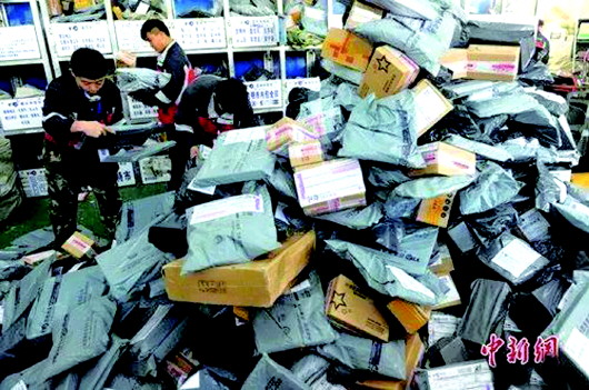 ◥快递行业目前大量使用塑料包装。 资料图