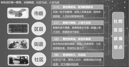 由于缺乏有效的管控措施,返程人员难管理,小区信息难收集,网格员分身乏术,导致街道管控效率低,信息采集难。