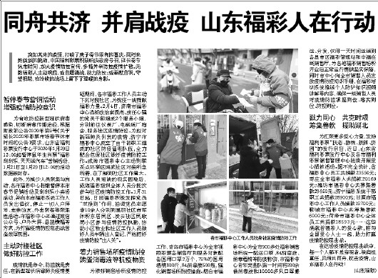 同舟共济 并肩战疫 山东福彩人在行动