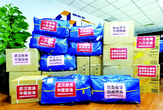 明德物业管理集团向武汉物业协会捐赠物资。