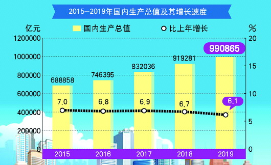 新华社北京2月28日电 国家统计局28日发布2019年国民经济和社会发展统计公报。公报显示,初步核算,全年国内生产总值990865亿元,比上年增长6.1%;人均国内生产总值70892元,比上年增长5.7%。