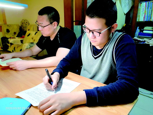 甸柳一中一位家长在家陪孩子考试。 家长供图