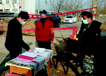 高庙刘村劝返点,执勤人员为出入群众登记。