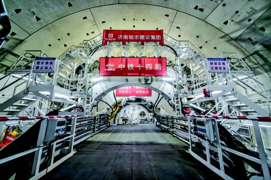 本报济南3月9日讯(记者 于悦) 齐鲁晚报·齐鲁壹点记者9日获悉,济南黄河隧道工程取得新进展,“泰山号”盾构机顺利穿越鹊山片区低矮房屋、隧道最大覆土段黄河北大堤。自去年12月6日“泰山号”盾构机始发以来,直径达15.76米的超大型盾构机平均以10.7米/天的速度掘进,现已向黄河南岸有序前进,双线累计掘进超千米。