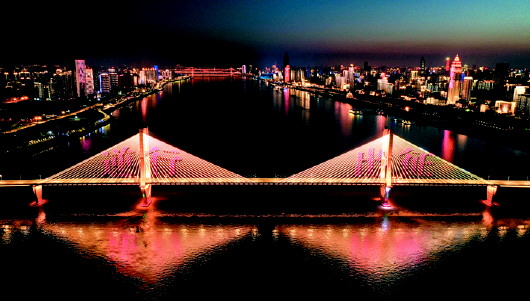 3月18日晚,武汉长江二桥上打出“逆行出征”的字样。 3月17日起,部分支援湖北医疗队开始有序返程。这几天,江城武汉多处建筑上用夜景灯光打出“白衣执甲”“逆行出征”等标语,表达武汉人民的感激和祝福。 新华