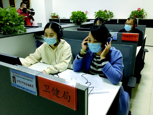 章丘区相关部门的工作人员到区12345热线回访平台回访市民。