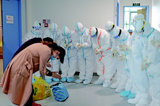 医患情深总是相互的,医护人员的辛苦付出赢得患者的一片赞誉和感谢之声。经过50多天的治疗,3月26日,周女士终于康复出院。“山东医疗队是最棒的,是你们救了我的命。”周女士多次向医护人员鞠躬致谢。