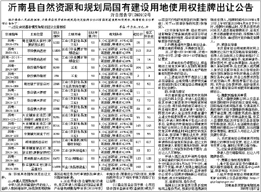 沂南县自然资源和规划局国有建设用地使用权挂牌出让公告
