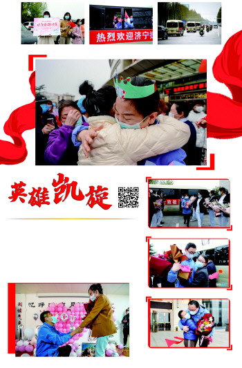 经过简短的欢迎仪式之后,这批来自邹城市人民医院、兖矿新里程总医院、金乡县人民医院的最美逆行者,陆续回到自己的家,和翘首企盼了52天的家人们,紧紧相拥在一起。