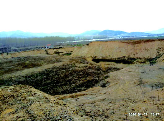 2019年9月19日,记者根据读者反映的线索到莱山区朱塂堡村现场了解情况。当时在朱塂堡村村委会,村委会副主任杨向武和一名村民领着记者来到村西南靠近夹河的一处被毁农田。“这一块我们叫水牛地,占地80多亩,2015年到现在被非法挖沙后,成了一处大坑。”杨主任指着眼前这片低洼地告诉记者,“最深处有30多米,2018年非法挖沙者被依法处理了,也交了处罚金,但被毁的这片地到现在也没有恢复。”