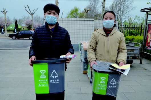 “我们垃圾有4分类,厨余垃圾就是做饭过程中产生的菜叶垃圾以及残汤剩饭、瓜皮果屑等,其他垃圾就是用过的卫生纸、纸尿裤等不能回收利用的垃圾,可回收垃圾包括塑料瓶、纸箱等,有害垃圾是废旧电池、过期药品等,今天我们发的家用垃圾桶是将厨余垃圾和其他垃圾分类收集,可回收垃圾希望大家收集起来然后卖给收废品的,有害垃圾箱我们在村委里配备一个,大家定时将收集的有害垃圾放到里面……”在分类垃圾桶发放之前,区环卫中心考核办主任王静手拿分类垃圾桶,向村民科普垃圾分类知识、分类垃圾桶的使用方法。
