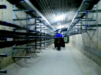 走到二分区,运维人员马飞飞和李光之带着记者来到了一处逃生口,逃生口安装着逃生梯,逃生梯非常密。逃生口距离地面大约有6米,顺着梯子往上爬就可以直接到达地面。在整条地下综合管廊里,共有12个这样的逃生口。马飞飞告诉记者,地下管廊地下深6米,宽高均2.6米,南起梨园变电站、北至中学街,全长3.5公里。“由于距离比较长,有时候我们需要骑专门的电动车进行检修。”马飞飞和李光之每检查一处设备,都会记录下相关数据。李光之介绍,他们每天至少要在管廊内人工巡检一遍,包括排水、消防、照明、风机、桥架等设施,都需要检修到,巡查一遍要将近两个小时。