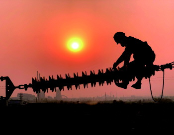 ▲3月16日,国网淄博供电公司输电运检室工作人员使用远程激光异物清除设备清理220千伏源铁线44号塔挂线飘浮物。(孟浩)
