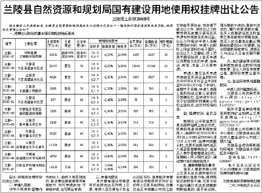 兰陵县自然资源和规划局国有建设用地使用权挂牌出让公告