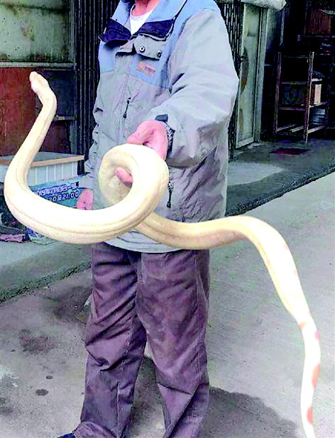 14日早晨,杭州未来科技城的绿化养护工人在西溪路边草坪发现一条大蛇,浑身雪白。网友调侃道:白娘子现身了,许仙在哪儿? 钱晚