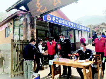 身穿红色小马甲,带着小喇叭,公交城阳巴士第一分公司的“萤火虫”公益服务志愿者利用休息时间来到毛公山景区,参加护林防火和防疫工作。他们一边向游客发放单页、宣传护林防火小知识,一边提醒进山游客需按照规定扫码进山,并协助景区管理人员组织游客有序分流、测温。