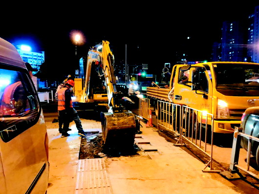 “经过多方沟通,考虑到又在小区出入口附近,紧挨着非机动车道,下班高峰期的时候交通压力比较大,所以我们晚上7点开始抢修。”该工作人员说,而且由于污水管道时间久远,他们手里没有相关图纸,“只能边挖边看,什么时候抢修好还不好说。”