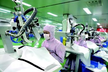 愉悦家纺的防护服生产线