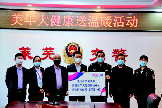 莱芜美年大健康体检中心向莱芜交警捐赠价值12万元的体检卡。