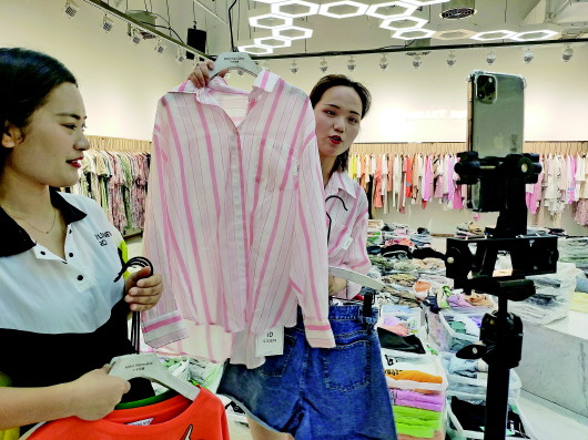 华丰国际服装城内,约有30%业主开始兼顾做起直播。