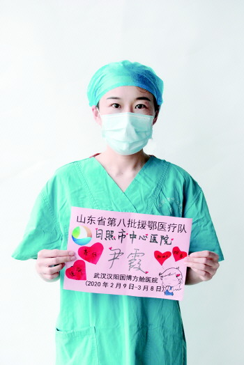 尹霞 尹霞是日照市中心医院重症医学科副护士长、护师,2月9日远赴湖北支援抗击新冠肺炎一线战斗,2月15日和其他队员一起进驻武汉汉阳国博方舱医院,一直奋战在最危险的一线,与病毒搏斗。