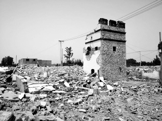 近日,记者在枣庄市中区寨子村看到,一座老炮楼屹立在一片拆迁后的废墟中,内部保存尚好,外部出现了多处损毁。据村里一位老人称,炮楼约有88年历史。本报记者 姚冲 摄影报道