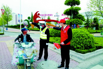 文明交通志愿者在行动。