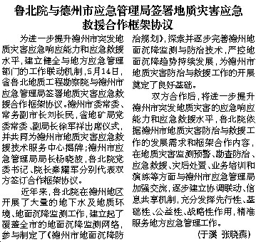 鲁北院与德州市应急管理局签署地质灾害应急