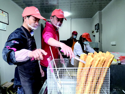 “我跟我闺女专门到长清的总店学了两天炸油条。”43岁的张文保以前从事五金行业的工作,他说自己害怕学艺不精砸掉“油条任家”的牌子,不过任晓猛一直在鼓励他们,还派了两位专业的技师到店指导。