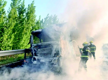 本报5月19日讯(记者 张晓鹏 通讯员 刘海) 5月19日清晨,一辆重型货车行驶至沈海高速(北向南)584KM处时,车辆突然自燃,青岛高速交警配合消防人员成功灭火,现场无人员伤亡,但着火车辆已烧成空架子了。