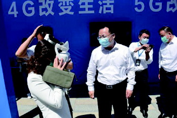 工作人员现场对5G网络进行实测。
