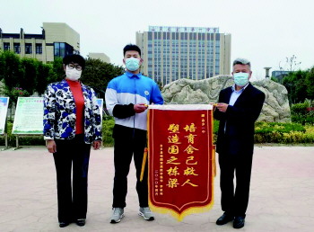 被救市民家属到学校送锦旗。