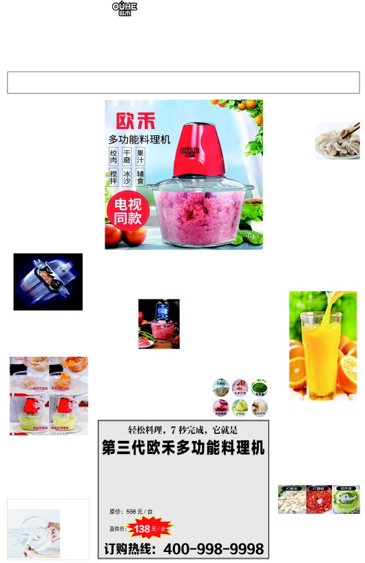 欧禾多功能料理机,此次厂家做推广活动,数量有限,名额仅限前30名,请抓紧时间拨打电话订购吧!