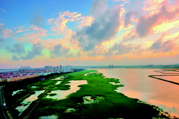 乳山市秉承“绿水青山就是金山银山”的发展理念,积极推进生态文明建设,采取PPP的运作模式,引进国内知名综合性园林企业对潮汐湖进行生态提升建设,打造集生态保护、旅游观光、休闲娱乐、科普教育于一体的综合性湿地公园,实现了自然环境与美好人居的和谐共处。