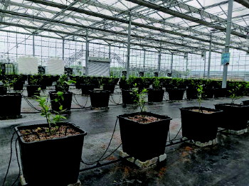 翁家埠村智慧大棚里的“盆栽蓝莓”。
