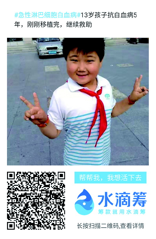 “爸爸我什么时候可以回去上学啊?还能赶上学校的期末考试吗?”躺在床上输着液的刘俊江,满眼期盼地问着爸爸刘玉武,13岁本该是无忧无虑上学的年纪,可是小俊江已经和急性淋巴细胞白血病抗争了近6年。